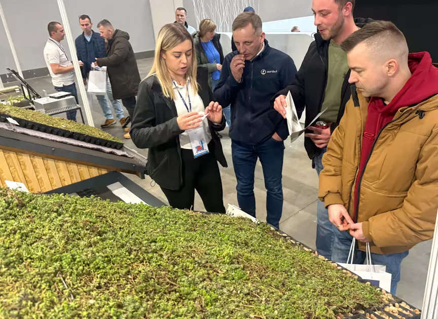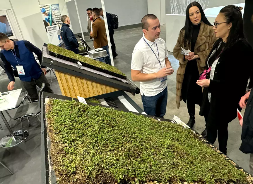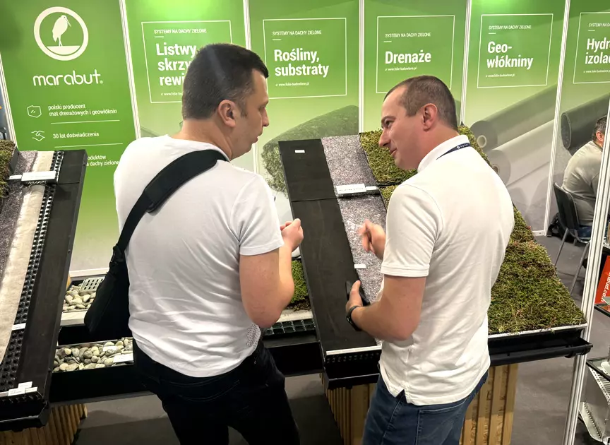 Podczas tegorocznej edycji skupiliśmy się na promowaniu ekologicznych i funkcjonalnych rozwiązań, jakimi są dachy zielone. Na naszym stoisku odwiedzający mogli z bliska poznać system zielonych dachów PROEKO, który łączy w sobie trwałość z dbałością o środowisko naturalne. To kompleksowe rozwiązanie, które odpowiada na rosnące potrzeby nowoczesnej architektury miejskiej i budownictwa zrównoważonego.