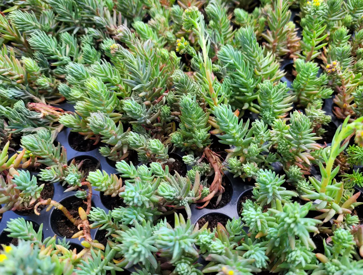 Sadzonki rozchodników to ekonomiczny sposób zazielenienia dachów w uprawie ekstensywnej. W ofercie różne odmiany Sedum sprawdzone w uprawie w warunkach klimatycznych panujących na terenie Polski. Rozchodniki charakteryzują się wysoką odpornością na suszę, promieniowanie UV oraz zmienne warunki atmosferyczne, co czyni je idealnym wyborem na dachy zielone. Sadzonki rozchodników umieszczone są w multiplatach rozsadowych o wymiarach 50 x 30 cm. Multiplata w zależności od bryły korzeniowej sadzonki zawiera od 110 do 192 sztuk roślin. Sadzonki rozchodnika dostarczane są w multiplatach rozsadowych, ułożone w kartonach. Do produkcji rozsady Sedum użyto od 4 do 21 gatunków odmiany rozchodnika. Rozchodnik jest mało wymagający, jeśli chodzi o podłoże ale w celu odpowiedniego przyrostu oraz właściwego ukorzenienia zaleca się zastosowanie substratu ekstensywnego, który dostarczy roślinie właściwe warunki wegetacyjne.