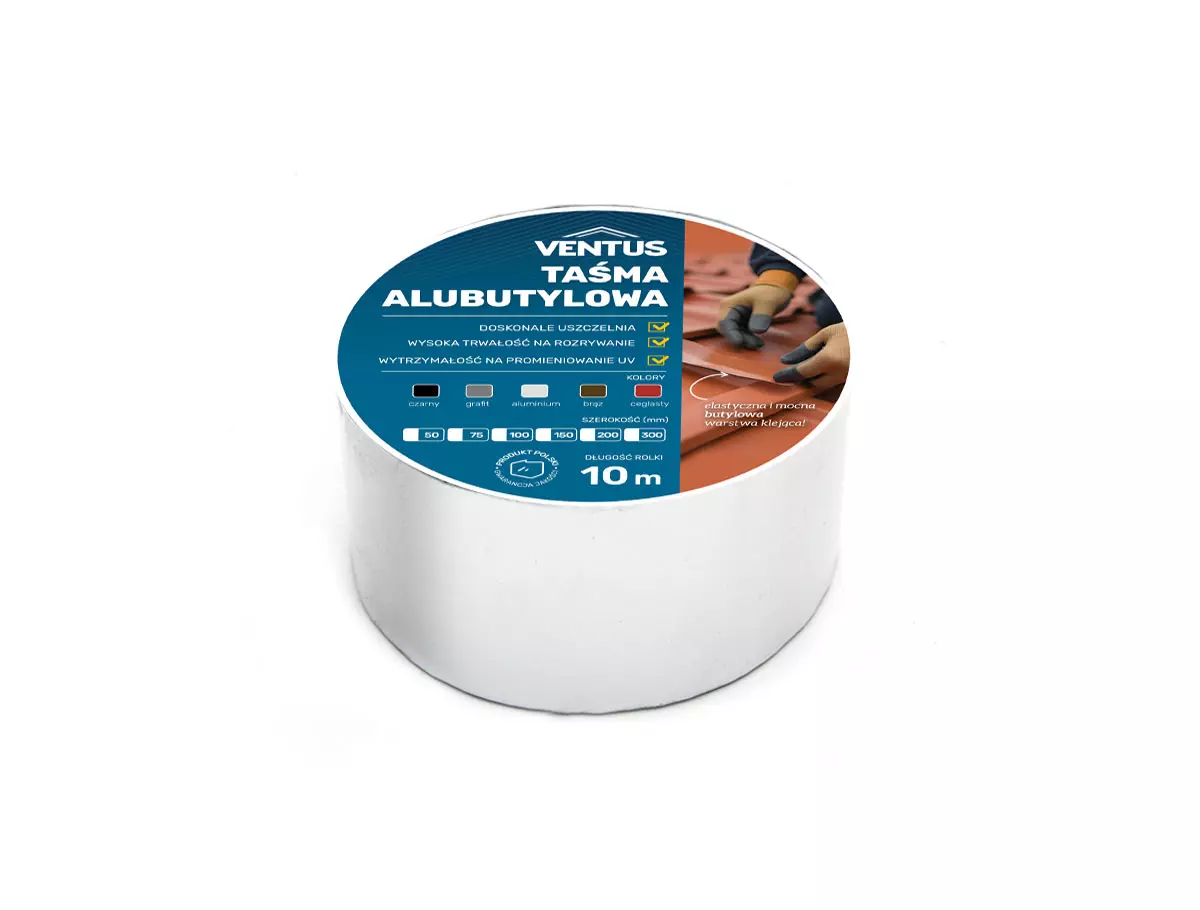 Taśma alubutylowa VENTUS zapewnia doskonałe uszczelnienie. Komfort przy klejeniu oraz niska masa zdecydowanie deklasują twarde, grube i ciężkie taśmy bitumiczne.